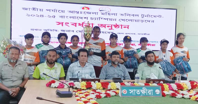 সাতক্ষীরায় আন্তঃজেলা মহিলা ভলিবল প্রতিযোগিতা ২০২৪-২৫ এ বাংলাদেশ চ্যাম্পিয়ন হওয়ায় সাতক্ষীরা জেলা মহিলা ভলিবল দলকে জেলা প্রশাসন ও জেলা ক্রীড়া সংস্থা, সাতক্ষীরার পক্ষ থেকে সংবর্ধনা প্রদান করা হয়। আজ বুধবার (২১ মে) বিকালে জেলা প্রশাসকের সম্মেলন কক্ষে আয়োজিত সংবর্ধনা অনুষ্ঠানে প্রধান অতিথি হিসেবে উপস্থিত ছিলেন সাতক্ষীরা জেলা প্রশাসক ও জেলা ক্রীড়া সংস্থার আহ্বায়ক মোস্তাক আহমেদ।
