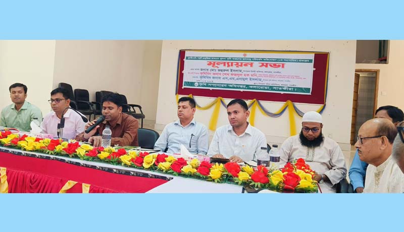 দীপক শেঠ, কলারোয়া : কলারোয়ায় ক্লাইমেট-স্মার্ট প্রযুক্তির মাধ্যমে খুলনা কৃষি অঞ্চলের জলবায়ু পরিবর্তন অভিযোজন(১ম সংশোধিত) প্রকল্পের মূল্যায়ন সভা অনুষ্ঠিত হয়েছে। মঙ্গলবার সকাল ১১ টায় কলারোয়া উপজেলা পরিষদ মিলনায়তনে অনুষ্ঠিত এ সভায় প্রধান অতিথি ছিলেন উপজেলা নির্বাহী অফিসার( ইউএনও) মো. জহুরুল ইসলাম।