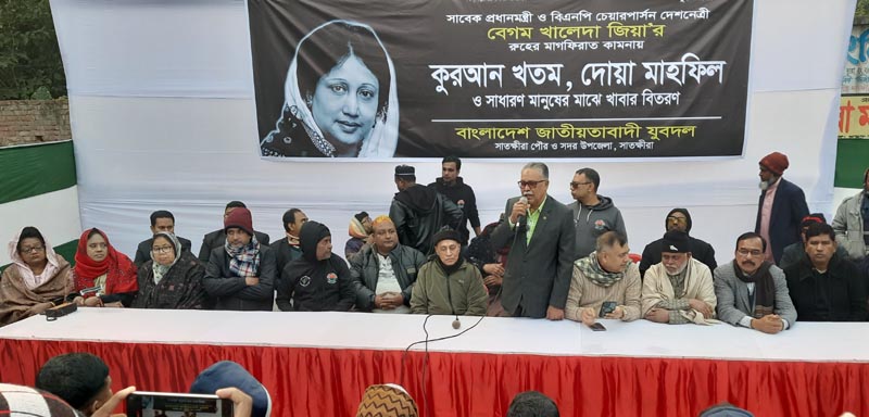 এসময় সাবেক প্রধানমন্ত্রী ও বিএনপির চেয়ারপার্সন বেগম খালেদা জিয়ার রুহের মাগফিরাত কামনা করে দোয়া মোনাজাত পরিচালনা করা হয়। দোয়া ও মোনাজাত পরিচালনা করেন ইমাম হাফেজ মাওলানা জুলফিকার আলী। সমগ্র অনুষ্ঠান সঞ্চালনা করেন জেলা যুবদলের সাবেক সাধারণ সম্পাদক এইচ আর মুকুল।