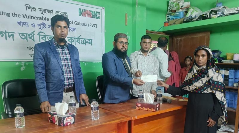 নিজস্ব প্রতিনিধি: শ্যামনগর উপজেলার গাবুরায় বেসরকারি উন্নয়ন সংস্থা ব্রতীর উদ্যোগে এবং দাতব্য সংস্থা নর্থ আমেরিকান বাংলাদেশি ইসলামিক কমিউনিটি (নাবিক)-এর সহযোগিতায় ৫০টি পরিবারের মাঝে সেলাই মেশিন ও ছাগল পালনের জন্য নগদ অর্থ বিতরণ করা হয়েছে। একই সঙ্গে ছিন্নমূল ও দরিদ্র পরিবারের ৪০০ শিশুর খাদ্য ও পুষ্টি সহায়তার জন্য প্রতিটি পরিবারকে ২ হাজার ৪০০ টাকা করে অনুদান দেওয়া হয়।