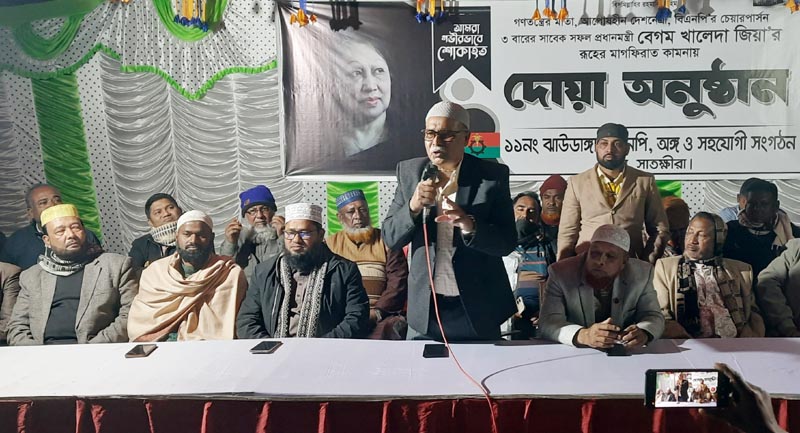 নিজস্ব প্রতিনিধি : সাবেক প্রধানমন্ত্রী ও বিএনপি চেয়ারপার্সন বেগম খালেদা জিয়ার রুহের মাগফিরাত কামনায় দোয়া অনুষ্ঠান অনুষ্ঠিত হয়েছে। মঙ্গলবার (১৩ জানুয়ারী) সন্ধ্যায় ঝাউডাঙ্গা বাজার সংলগ্ন জগন্নাথ মন্দিরের সামনে ঝাউডাঙ্গা ইউনিয়ন বিএনপির আয়োজনে ইউনিয়ন বিএনপি’র সভাপতি ও সাবেক ইউপি চেয়ারম্যান আলহাজ্ব মো. রফিকুল ইসলাম এর সভাপতিত্বে আলোচনা ও দোয়া অনুষ্ঠানে প্রধান অতিথি হিসেবে বক্তব্য রাখেন সাতক্ষীরা-২ (সাতক্ষীরা সদর-দেবহাটা) আসনে জাতীয়তাবাদী দল বিএনপি মনোনীত ধানের শীষের প্রার্থী আলহাজ্ব মো. আব্দুর রউফ।