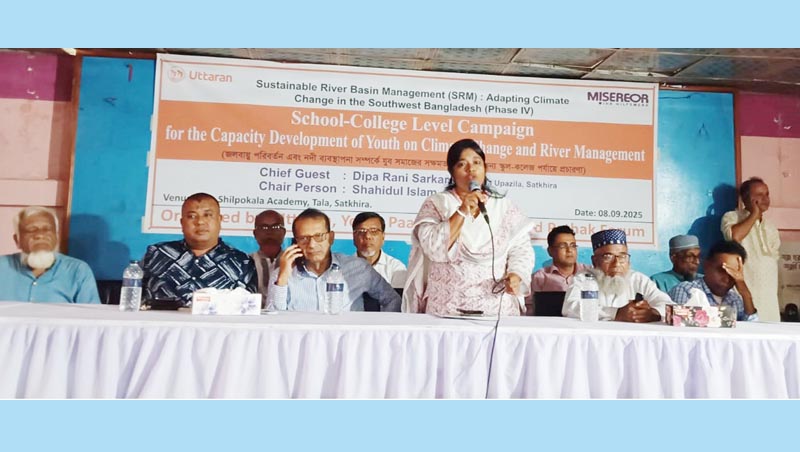 তালা (সাতক্ষীরা) প্রতিনিধি : সাতক্ষীরার তালায় জলবায়ু পরিবর্তন ও নদী ব্যবস্থাপনা সম্পর্কে যুবসমাজের সক্ষমতা বিকাশের লক্ষ্যে স্কুল-কলেজ পর্যায়ে প্রচারণা বিষয়ক কর্মশালা অনুষ্ঠিত হয়েছে। সোমবার (৮ সেপ্টেম্বর) সকালে তালা শিল্পকলা একাডেমি মিলনায়তনে উত্তরণ, যুব পানি কমিটি ও পাঠক ফোরামের যৌথ উদ্যোগে এ কর্মশালার আয়োজন করা হয়।