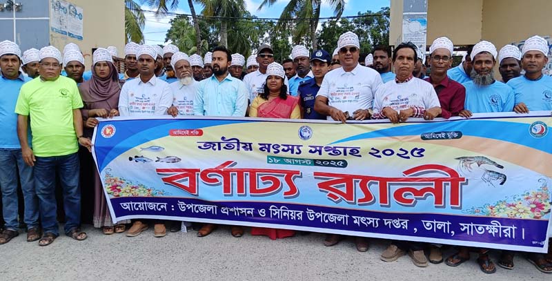 তালা (সাতক্ষীরা) প্রতিনিধি : অভয়াশ্রম গড়ে তুলি, দেশি মাছে দেশ ভরি প্রতিপাদ্যকে সামনে রেখে সাতক্ষীরার তালায় জাতীয় মৎস্য সপ্তাহ-২০২৫ শুরু হয়েছে। সোমবার (১৮ আগস্ট) সকালে উপজেলা পরিষদ চত্বর থেকে একটি বর্ণাঢ্য র্যালি বের হয়ে উপশহরের বিভিন্ন সড়ক প্রদক্ষিণ শেষে উপজেলা পরিষদের পুকুরে মাছের পোনা অবমুক্ত করা হয়।