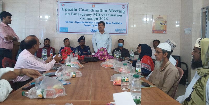 তালা (সাতক্ষীরা) প্রতিনিধি : সাতক্ষীরার তালায় ইপিআই কার্যক্রম বাস্তবায়নের লক্ষ্যে আসন্ন হাম-রুবেলা টিকাদান ক্যাম্পেইন ২০২৬ সফল করতে উপজেলা পর্যায়ে সমন্বয় সভা অনুষ্ঠিত হয়েছে। বৃহস্পতিবার (১৬ এপ্রিল) সকালে উপজেলা স্বাস্থ্য কমপ্লেক্সের হলরুমে এ সভা অনুষ্ঠিত হয়।