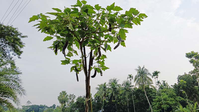 জয়নুদ্দীন সরদার বলেন, প্রায় ১৪ মাস আগে গাছটি লাগিয়েছিলাম। ভাবিনি যে এত লম্বা হবে। এখন পর্যন্ত প্রায় ৪–৫ কেজি বেগুন তুলেছি। খেতেও দারুণ সুস্বাদু।