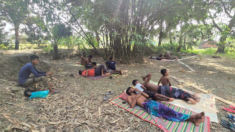 নিজস্ব প্রতিনিধি : সাতক্ষীরায় তীব্র তাপপ্রবাহ ও ঘন ঘন লোডশেডিংয়ে জনজীবন বিপর্যস্ত। দুপুরের তীব্র রোদে গ্রামের মানুষ ঘরবাড়ি ছেড়ে আশ্রয় নিচ্ছে বাড়ির পাশের বাঁশবাগানে। প্রচ- গরমে ফ্যান-বিদ্যুৎহীন অসহনীয় হয়ে উঠেছে জনজীবন। বৃহস্পতিবার দুপুরে সাতক্ষীরা সদর উপজেলার বকচরা গ্রামের একটি বাঁশ বাগানে শিশু-কিশোর থেকে শুরু করে বয়স্করাও পাটি বা চাটাই বিছিয়ে বিশ্রাম নিতে দেখা যায়।