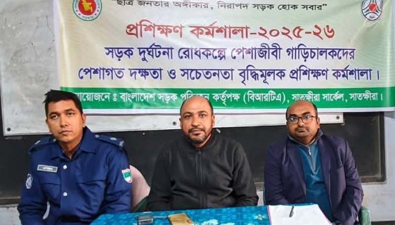 শেখ আমিনুর হোসেন : বাংলাদেশ সড়ক পরিবহন কর্তৃপক্ষ (বিআরটিএ) সাতক্ষীরা সার্কেলের উদ্যোগে পেশাজীবি গাড়ি চালকদের পেশাগত দক্ষতা ও সচেতনতা বৃদ্ধিমূলক প্রশিক্ষণ ২০২৫- ২৬ কর্মশালা অনুষ্ঠিত হয়েছে।
