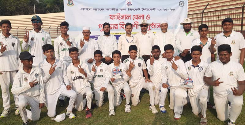 নিজস্ব প্রতিনিধি : সাতক্ষীরায় প্রাইম ব্যাংক জাতীয় স্কুল ক্রিকেট টুর্নামেন্ট ২০২৫-২৬ এর ফাইনাল খেলা ও পুরস্কার বিতরণী অনুষ্ঠিত হয়েছে। সোমবার (২০ এপ্রিল) বিকালে সাতক্ষীরা জেলা স্টেডিয়ামে বাংলাদেশ ক্রিকেট বোর্ডের আয়োজনে ও জেলা ক্রীড়া সংস্থার ব্যবস্থাপনায় এবং প্রাইম ব্যাংক লিমিটেডের পৃষ্ঠপোষকতায় অতিরিক্ত প্রাইম ব্যাংকের সিনিয়র অফিসার মোঃ সাইফুল ইসলামের সভাপতিত্বে প্রধান অতিথি হিসেবে টুর্নামেন্টের ফাইনাল খেলায় বিজয়ীদের মাঝে পুরস্কার বিতরণ করেন সাতক্ষীরা জেলা ক্রীড়া অফিসার মোঃ মাহবুবুর রহমান।