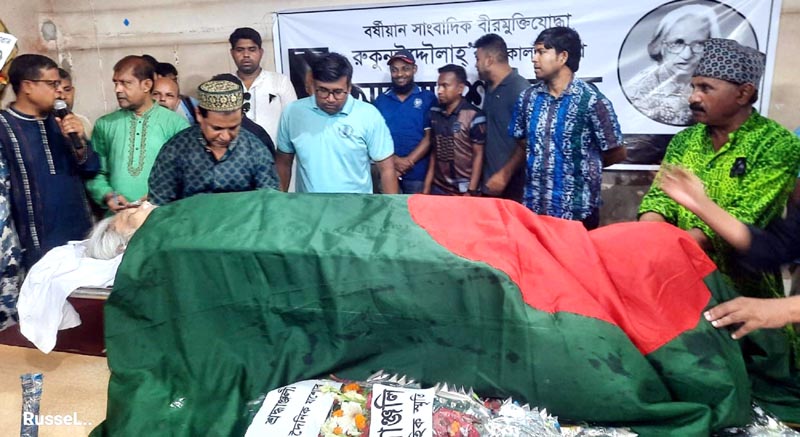 খুলনা, ০৮ ভাদ্র (আগস্ট ২৩) : বর্ষীয়ান সাংবাদিক, লেখক ও কলামিস্ট বীর মুক্তিযোদ্ধা রুকনউদ্দৌলার মৃত্যুতে তাঁর কফিনে শ্রদ্ধা নিবেদন করেন আঞ্চলিক তথ্য অফিস খুলনার উপপ্রধান তথ্য অফিসার এ এস এম কবীর। আজ দুপুরে বর্ষীয়ান এ সাংবাদিকের মরদেহ যশোর প্রেসক্লাবে আনা হলে সেখানে সর্বস্তরের সাংবাদিক নেতৃবৃন্দ তাঁর কফিনে শ্রদ্ধা নিবেদন করেন।