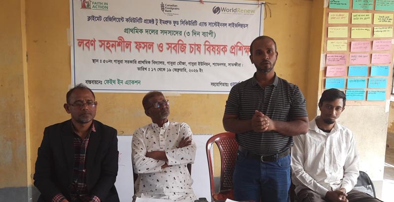 এরই ধারাবাহিকতায় ১৭ থেকে ১৯ ফেব্রুয়ারি ২০২৬ তারিখ গাবুরা ইউনিয়নের ৫০নং সরকারি প্রাথমিক বিদ্যালয়ে ২৫ জন অংশগ্রহণকারীকে (১৮ জন নারী ও ৭ জন পুরুষ) নিয়ে কৃষিতে অভিযোজন কৌশল বৃদ্ধিতে ৩ দিন ব্যাপী লবণ সহনশীল ফসল ও সবজি চাষ বিষয়ক প্রশিক্ষণের আয়োজন করা হয়। উক্ত প্রশিক্ষণের সমাপনী অনুষ্ঠান ১৯ ফেব্রুয়ারি বিকাল ৩:০০ টায় আয়োজন করা হয়।