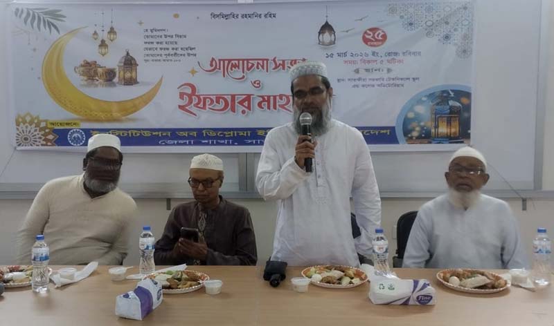নিজস্ব প্রতিনিধি : দেশের বৃহত্তম পেশাজীবি সংগঠন ইনস্টিটিউট অব ডিপ্লোমা ইঞ্জিনিয়ার্স বাংলাদেশ (আইডিইবি) সাতক্ষীরা জেলা শাখার উদ্যোগে আলোচনা সভা ও ইফতার মাহফিল অনুষ্ঠিত হয়েছে।