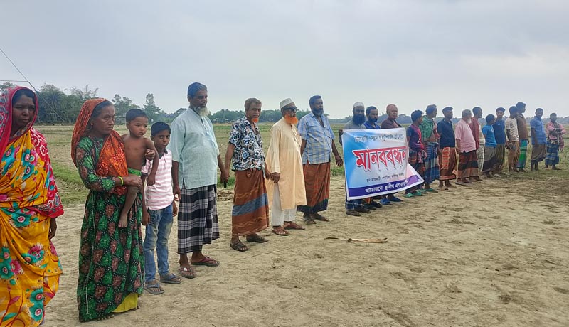 মানববন্ধনে উপস্থিত ছিলেন, মহাব্বত গাজী, জাহাঙ্গীর গাজী, হান্নান গাজী, তরিকুল গাজী, গোপাল মন্ডল, গোবিন্দ মন্ডল, মুজাহিদুল ইসলামসহ এলাকাবাসী।