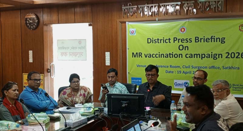 গাজী হাবিব : সারাদেশের টিকাদান কর্মসূচির অংশ হিসেবে সাতক্ষীরায় শুরু হতে যাচ্ছে হাম-রুবেলা (এমআর) টিকাদান ক্যাম্পেইন-২০২৬। আগামী ২০ এপ্রিল থেকে ১০ মে পর্যন্ত চলবে এ কর্মসূচি। এ উপলক্ষে রবিবার (১৯ এপ্রিল) দুপুরে জেলা সিভিল সার্জন কার্যালয়ের সম্মেলন কক্ষে এক প্রেস ব্রিফিং অনুষ্ঠিত হয়। এতে সভাপতিত্ব করেন সিভিল সার্জন ডা. মো. আব্দুস সালাম।