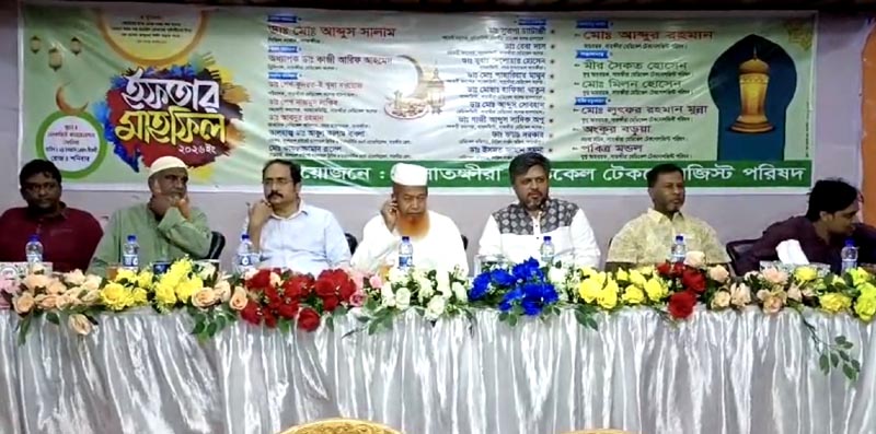 সাতক্ষীরা মেডিকেল টেকনোলজিস্ট পরিষদের আহবায়ক মো. আব্দুর রহমান এর সভাপতিত্বে ও যুগ্ম আহবায়ক মীর সৈকত হোসেন ও মিলন হোসেনের সঞ্চালনায় ইফতার মাহফিলে প্রধান অতিথি হিসেবে বক্তব্য রাখেন, সাতক্ষীরা মেডিকেল কলেজের অধ্যাপক ডাঃ কাজী আরিফ আহমেদ।
