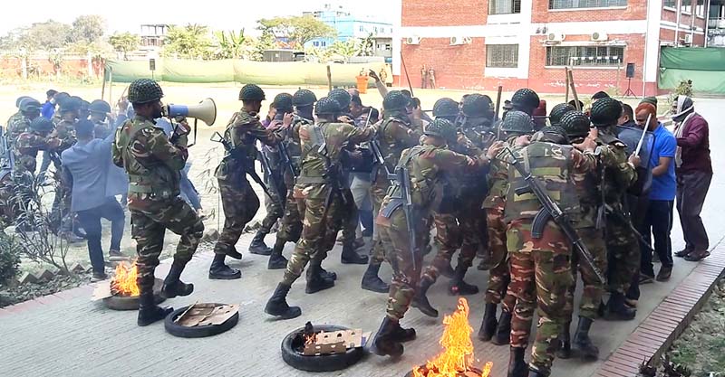 কৌশলগত অবস্থান গ্রহণ, নিরাপত্তা বেষ্টনী তৈরি, সন্দেহভাজনদের ঘিরে ফেলা এবং নির্ভুল অভিযানের মাধ্যমে ভোটকেন্দ্র দখলমুক্ত করা হয়। একই সঙ্গে নিরাপদে উদ্ধার করা হয় জিম্মি কর্মকর্তাকে। পুরো অভিযানটি পরিচালিত হয় নির্ধারিত সময়সীমার মধ্যে, যা সেনাবাহিনীর পেশাদারিত্বের প্রমাণ বহন করে।